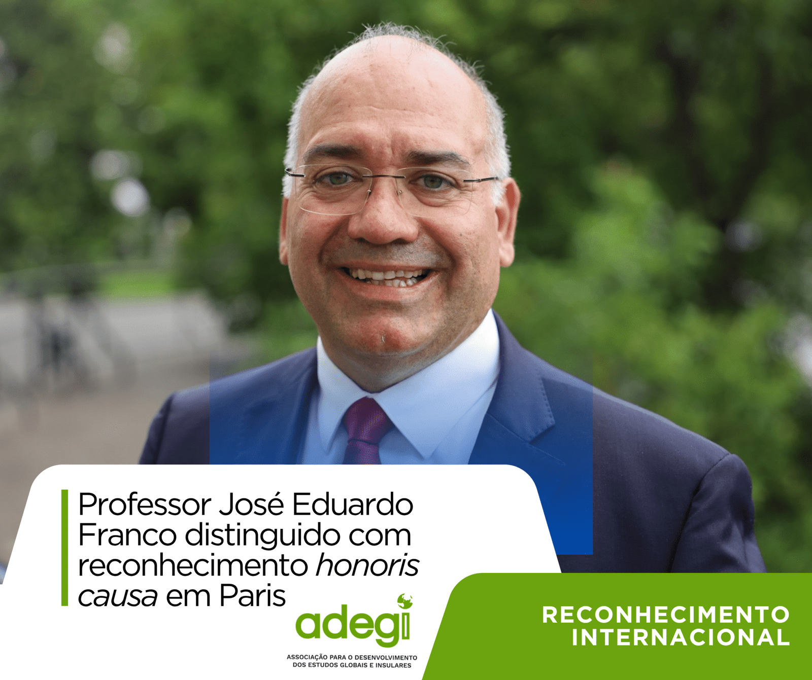José Eduardo Franco, Presidente da Assembleia Geral da ADEGI, Investigador-Coordenador da Universidade Aberta e titular da Cátedra UNESCO/CIPSH de Estudos Globais e Diretor do Centro de Estudos Globais da Universidade Aberta, foi distinguido pela Universidade de Paris Pantheón-Assas com o Doutoramento Honoris Causa, sendo o mais jovem historiador de sempre a recebê-lo por esta instituição.